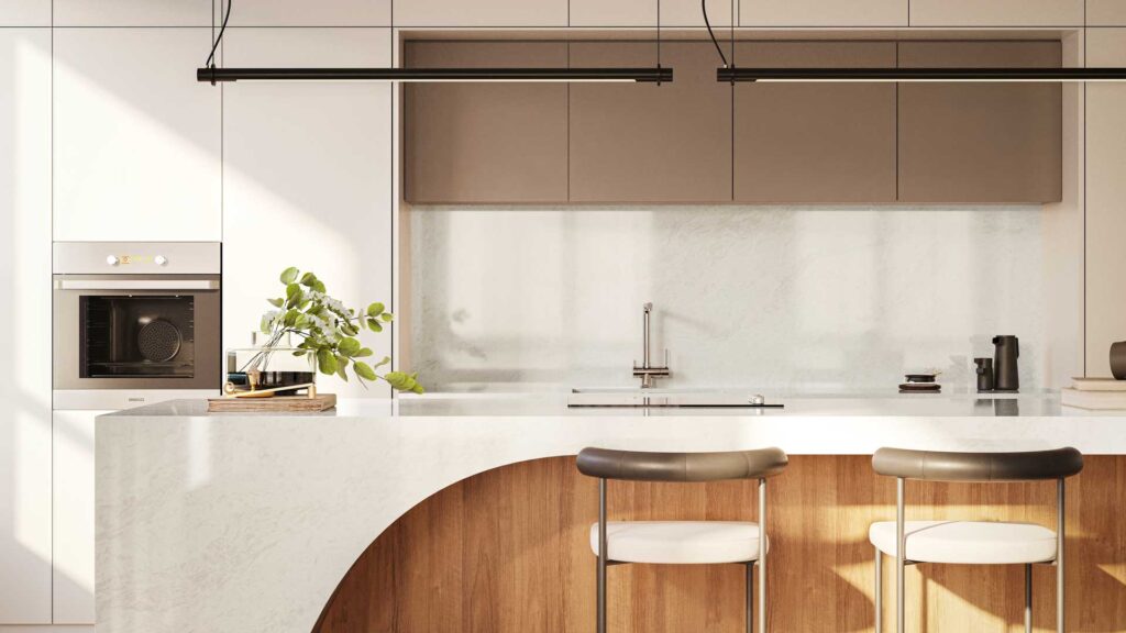 Since our products are manufactured from natural materials, each slab is unique. As a result, our images are representative and may differ from your actual surface. We encourage you to view the design at your nearest Caesarstone® or Kitchen Retail Showroom.