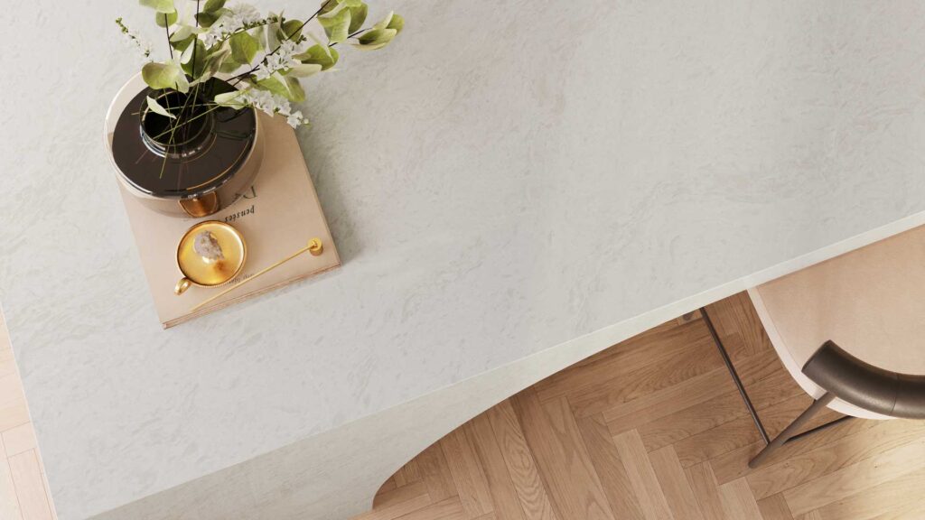 Caesarstone® ICON™ advanced mineral crystalline silica-free surfaces are innovative, sustainable surfaces formulated with a unique blend of natural minerals and recycled materials for superior durability and aesthetic appeal.