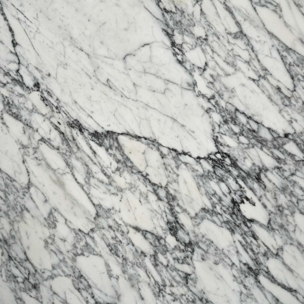 Statuario marble from Italy, with its polished finish, brings a bold and intricate character to any space. This stone displays a crisp white backdrop interwoven with striking grey veining that branches and scatters across the surface, creating a lively, textured look. Each vein tells its own story, adding depth and movement to this classic Italian marble, making it an eye-catching choice for a refined, yet dramatic touch.